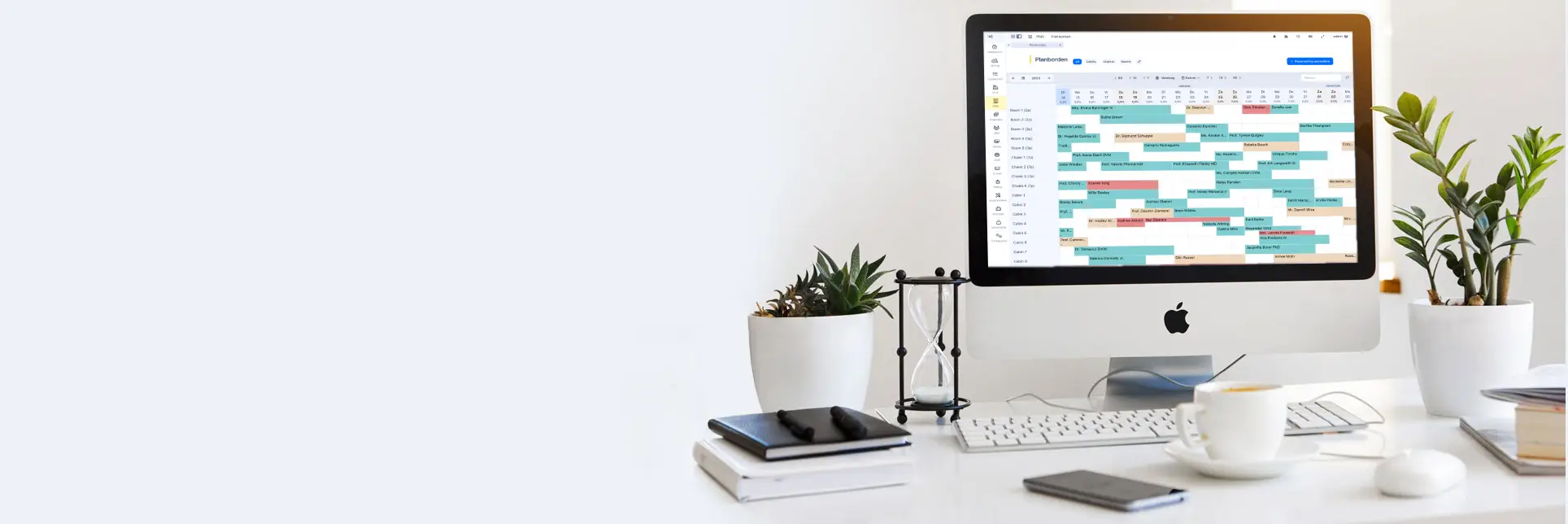 PMS System for bookings by month, week, night, day, hours, and minutes.